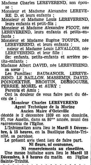 Mr Charles Lereverend repose au cimetière de Cherbourg (non gravé sur le monument)