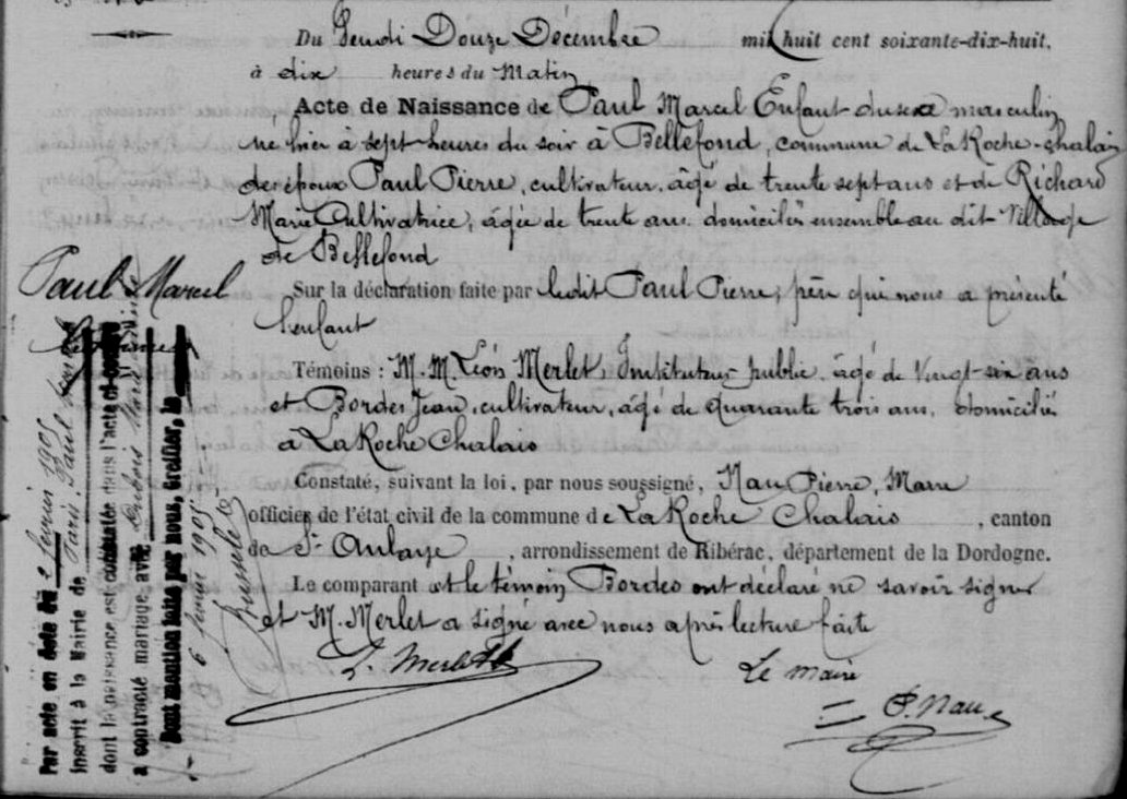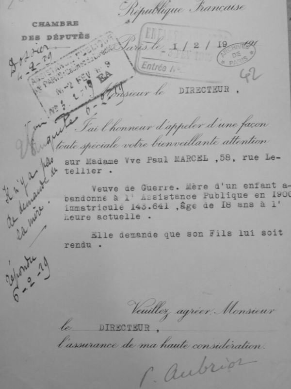 1913 Reconnaissance Marcel PAUL