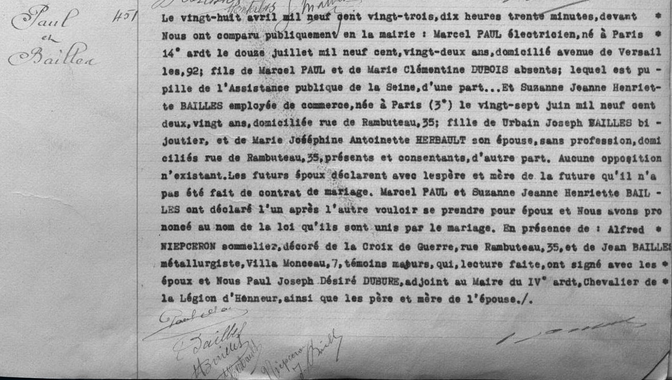 1923 M Marcel PAUL - Suzanne BAILLES
