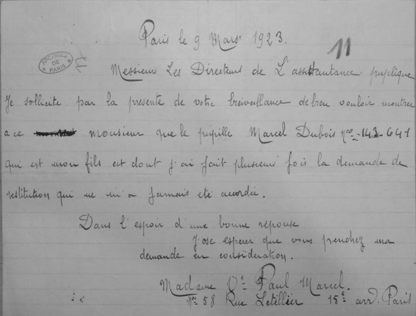Demandes de Marie Dubois pour retrouver son fils Marcel