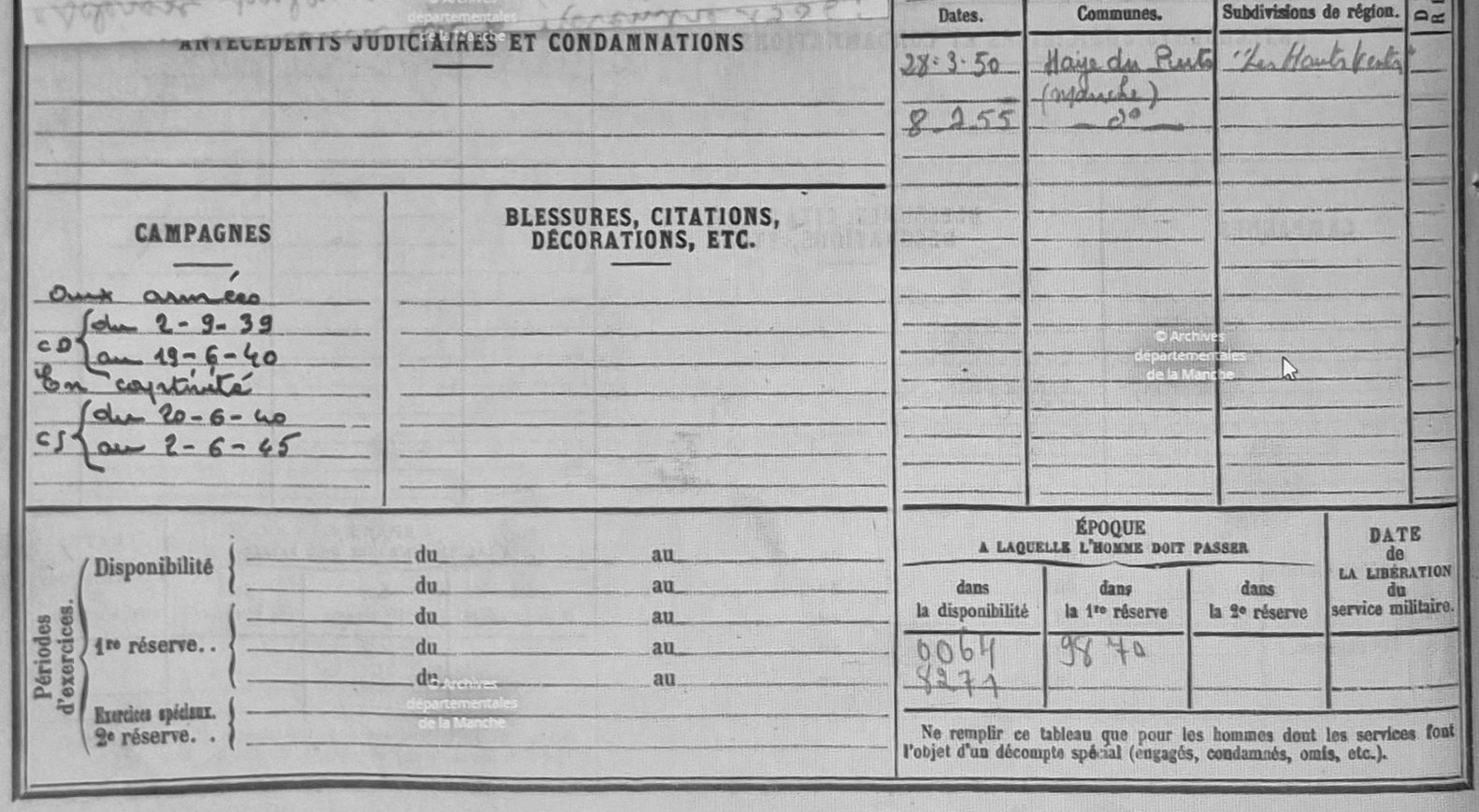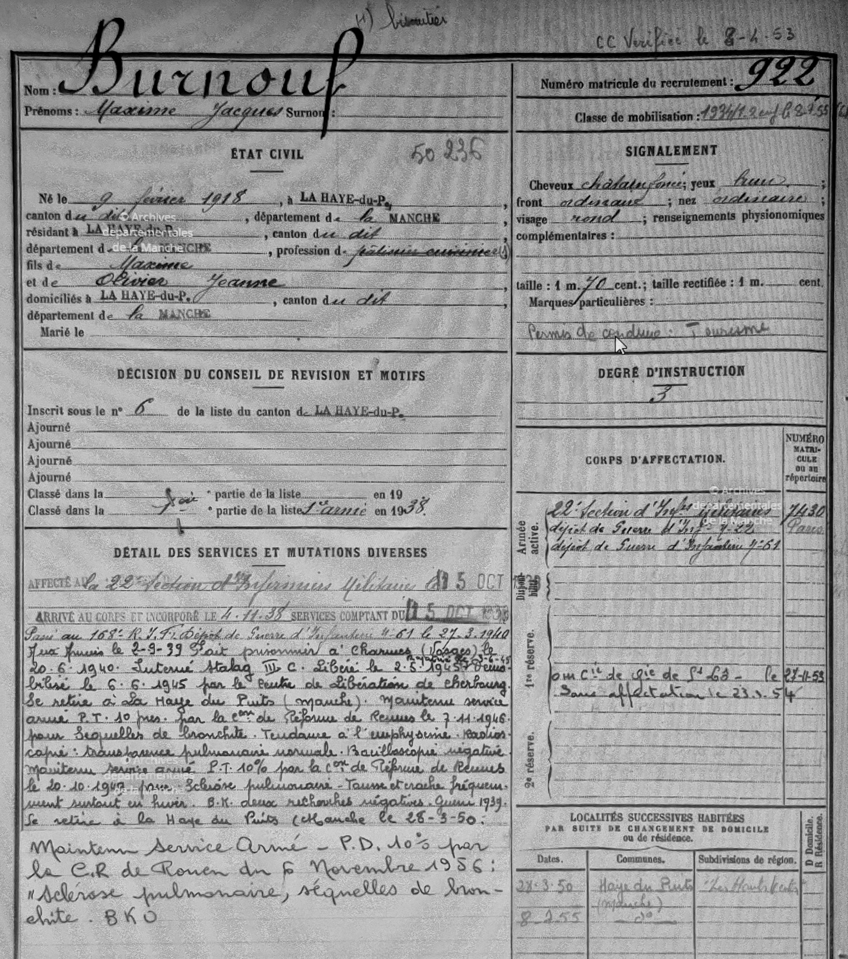 matricule militaire Cherbourg classe 1872 Archives de la Manche