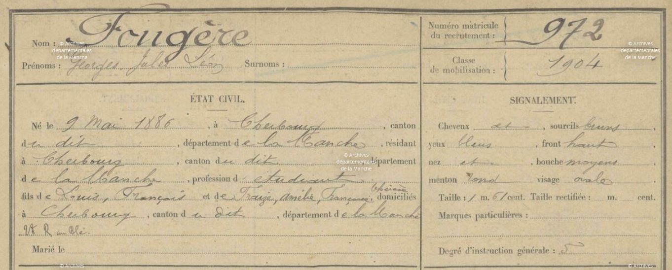 Matricule militaire classe 1906 Cherbourg N°972